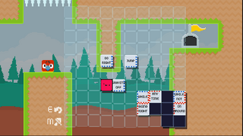 A puzzle -platformer where you change the game rules through moving around like blocks to create new game rules.